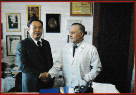 罗马尼亚国家糖尿病研究中心主任约内斯库特尔. 高维诗大博士亲切接见应邀到访的WSJ-B型(旋磁 式糖尿病治疗仪》发明人王世杰董事长、中国糖尿 病防治工程组织委员会专家委员。